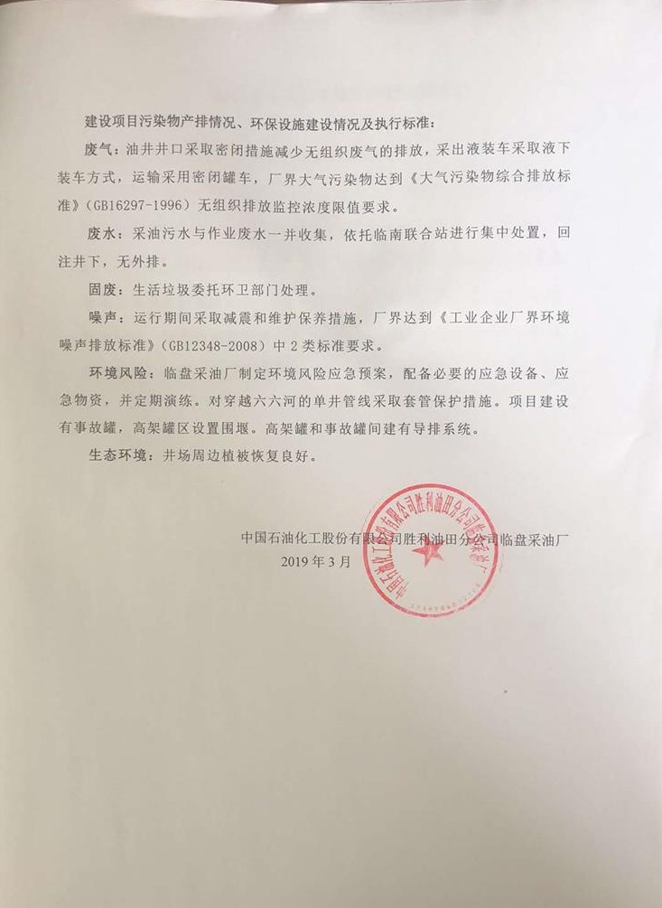 中國石油化工股份有限公司勝利油田分公司臨盤采油廠臨南油田錢五區塊產能建設項目竣工公示